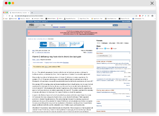Vitamin D is an extremely important vitamin that has powerful effects on several systems throughout your body. Vitamin D deficiency is very common. One of the risk factors of Vitamin D deficiency is bone and back pain.